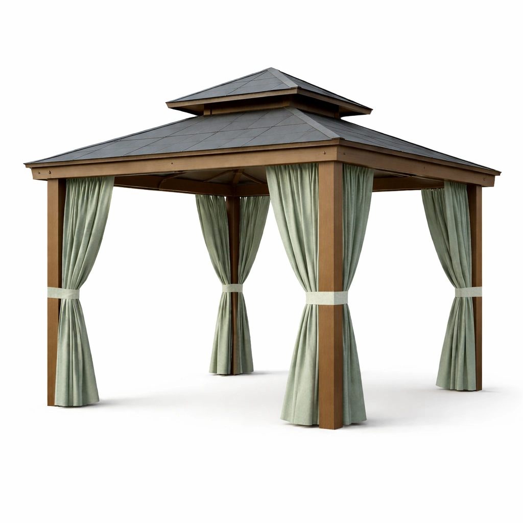 Holz mit stahlrahmen und polyester vorhängen pavillon 300x300x300cm